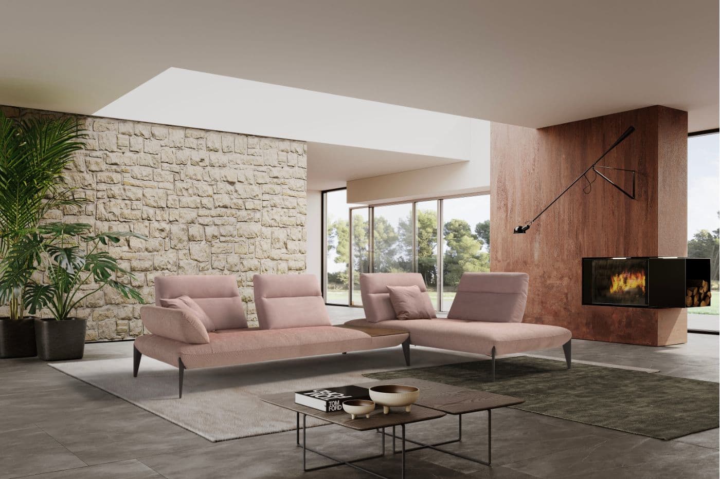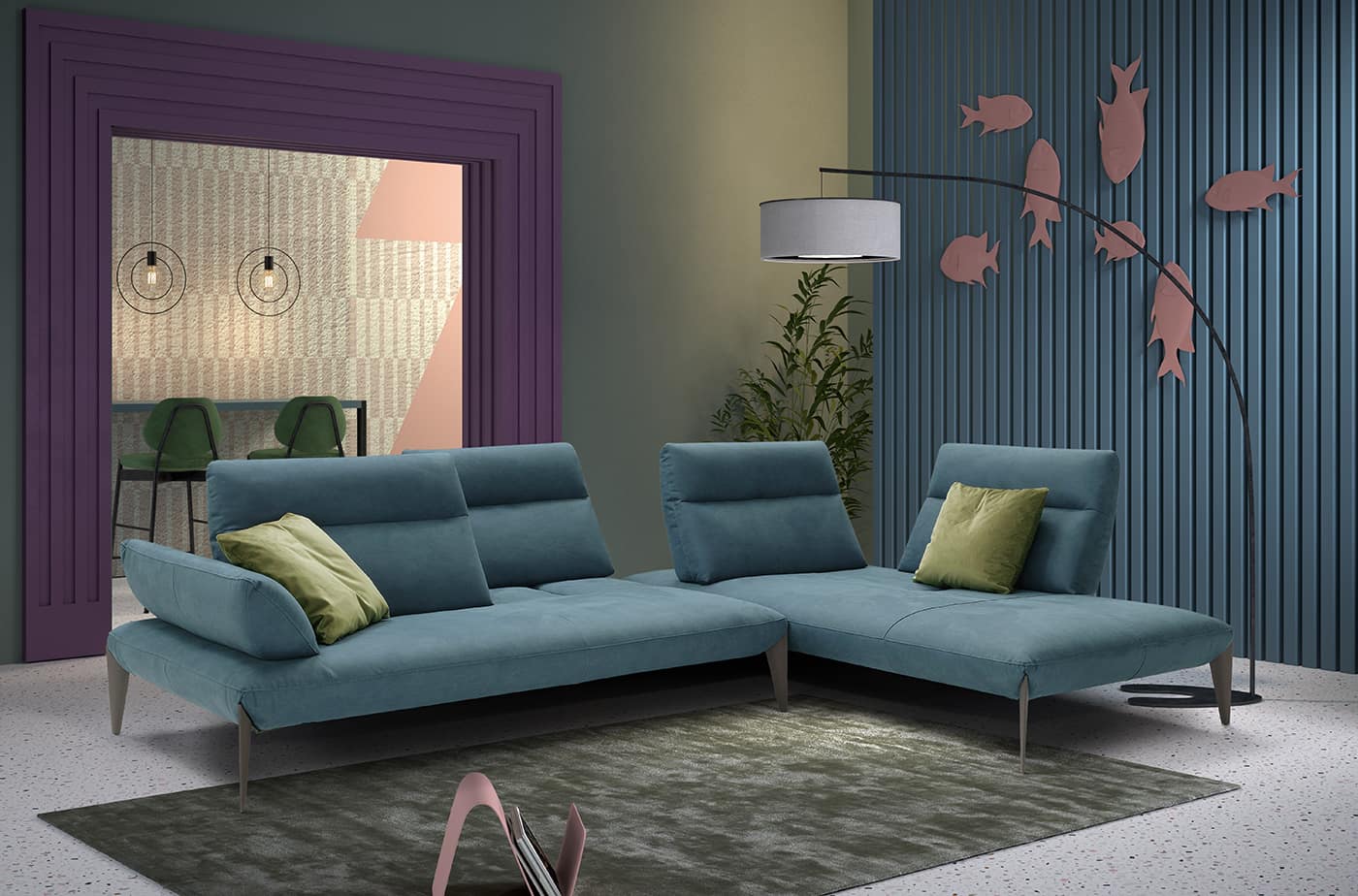 Due chiacchiere e magari un aperitivo sul divano? La posizione più avanzata degli schienali supporta i momenti di convivialità e condivisione.