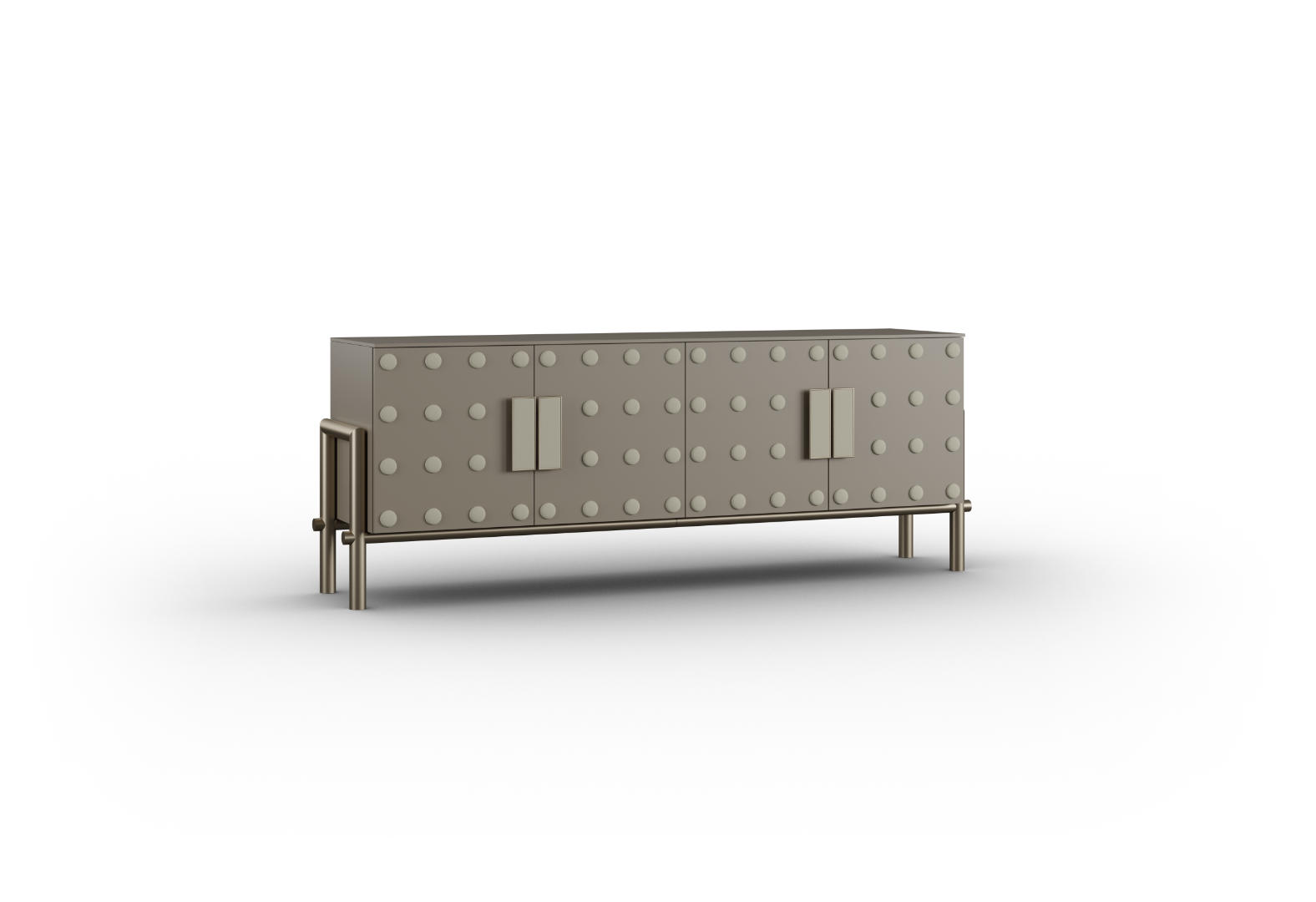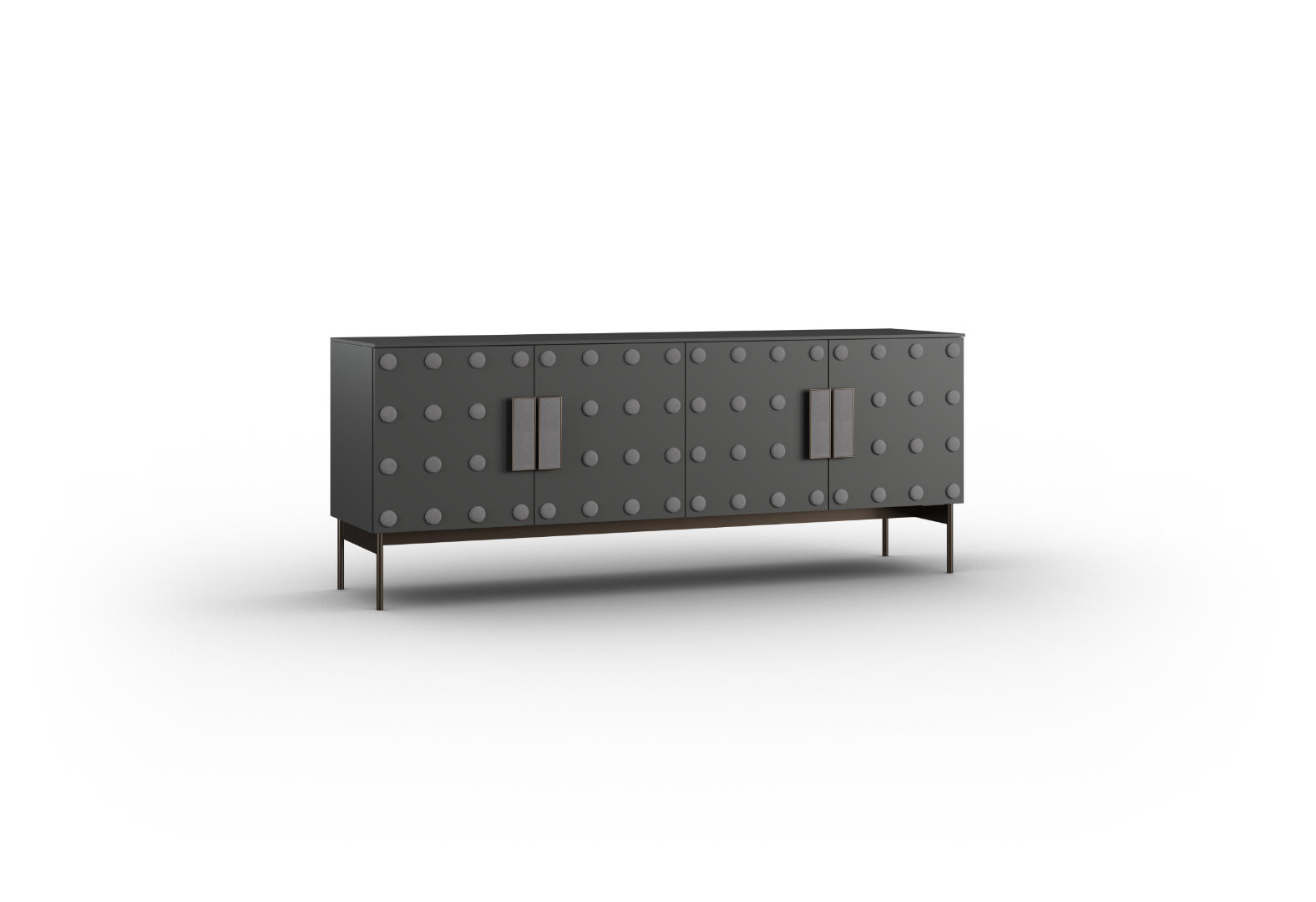 Versione Bronzo: basamento bronzo, cassa e ante laccate antracite con bottoni rivestiti in tessuto Wave .