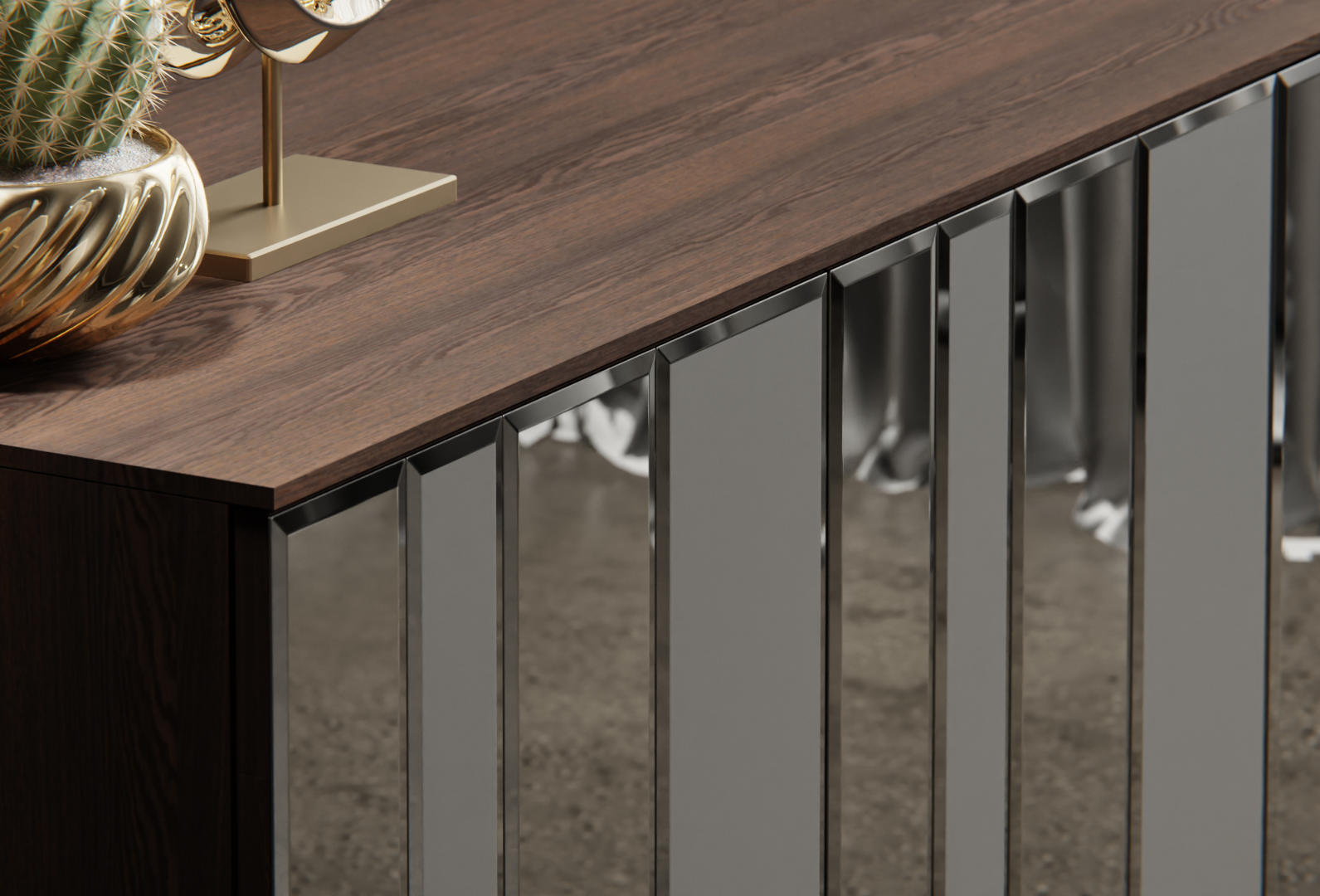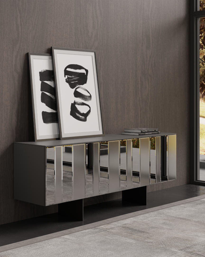 La madia Mozart è un complemento d’arredo elegante e raffinato, caratterizzato da una combinazione di materiali pregiati come vetro molato e legno, con dettagli metallici che ne esaltano lo stile contemporaneo.