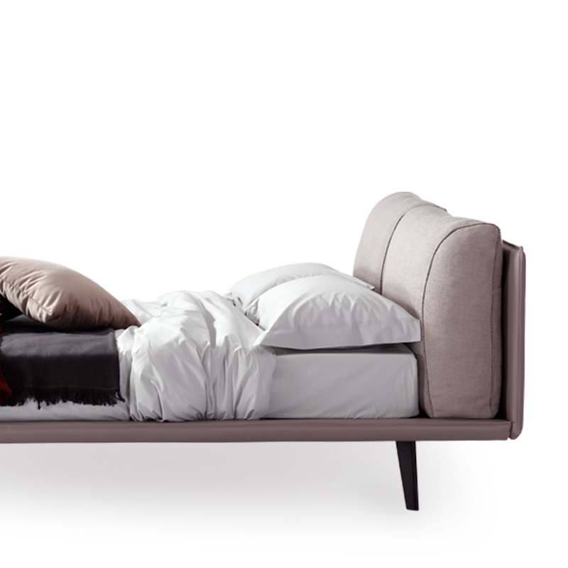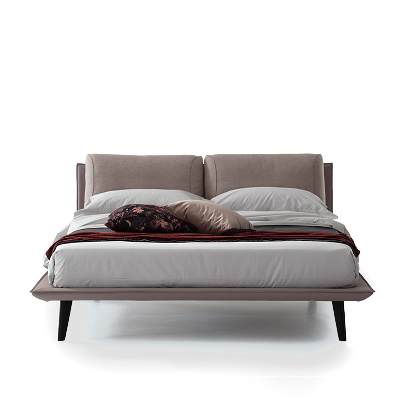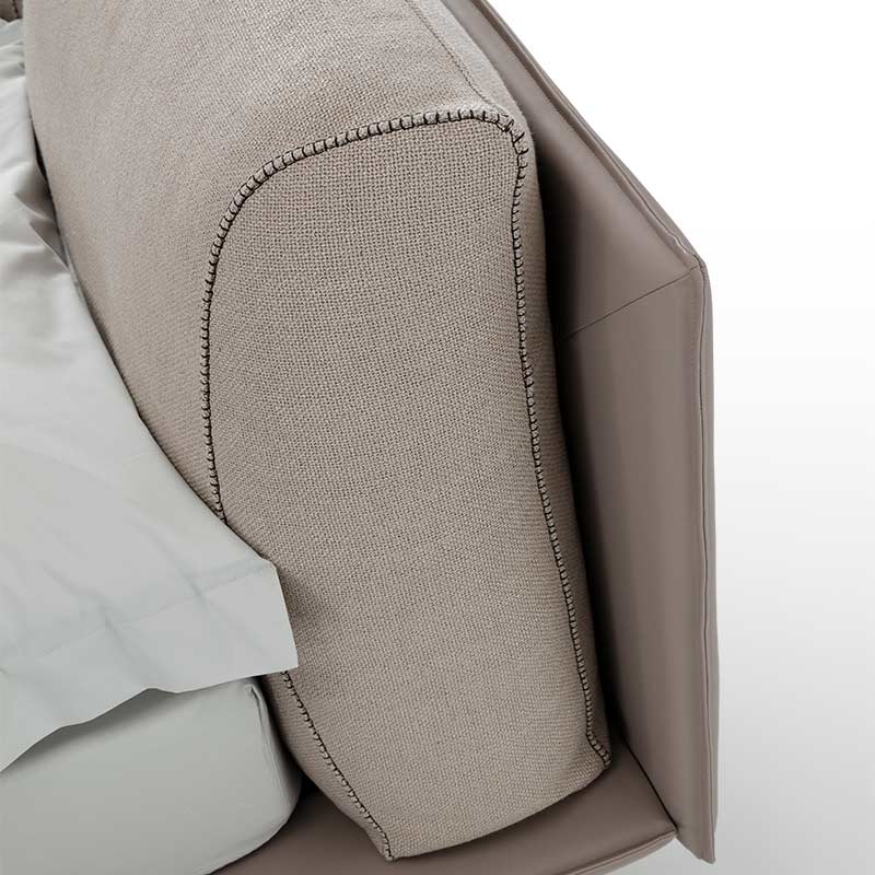 Eleganza e raffinatezza sono gli elementi cardine racchiusi nel letto Momo. La struttura leggera ben si contrappone alla testata caratterizzata da due morbidi cuscini in piuma con cucitura a contrasto.