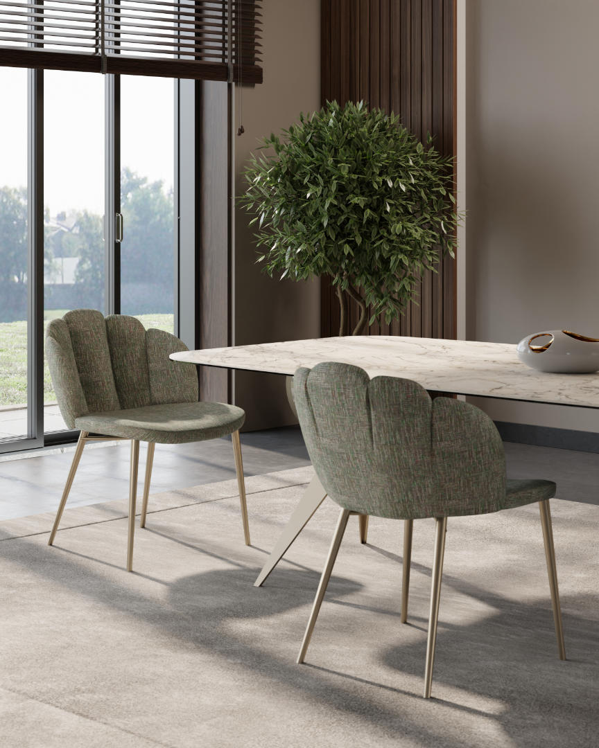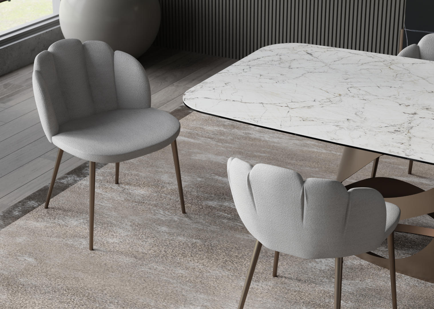 Basamento in metallo verniciato champagne con seduta mulstistrato 3D rivestita in Wave.