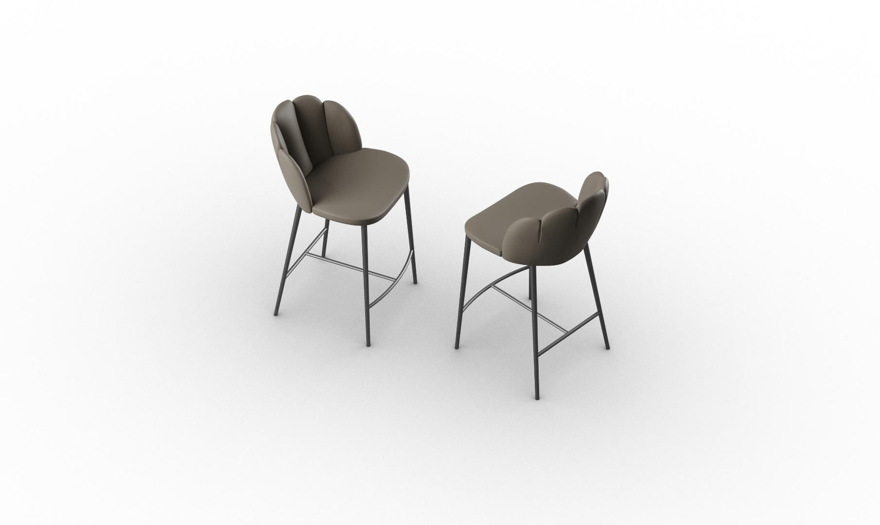 Modello disponibile nel formato sedia e sgabello, in vari materiali e finiture.