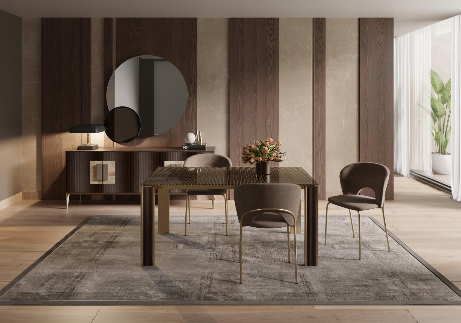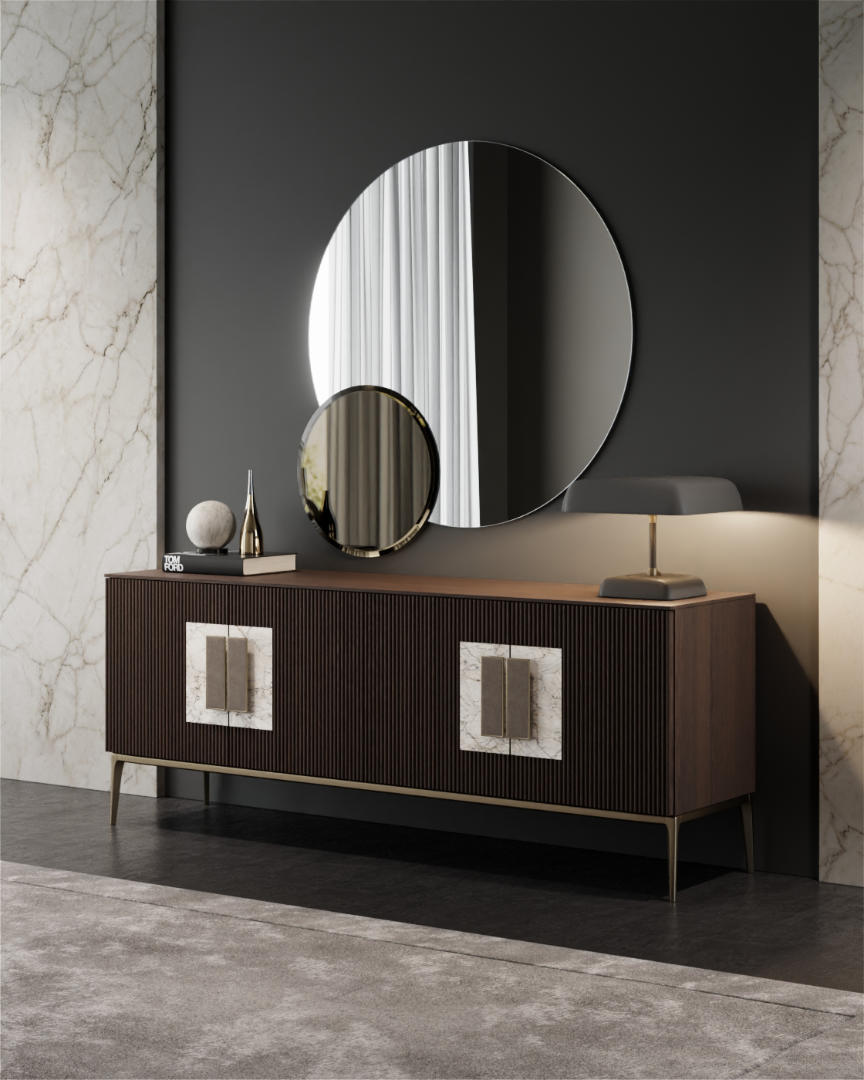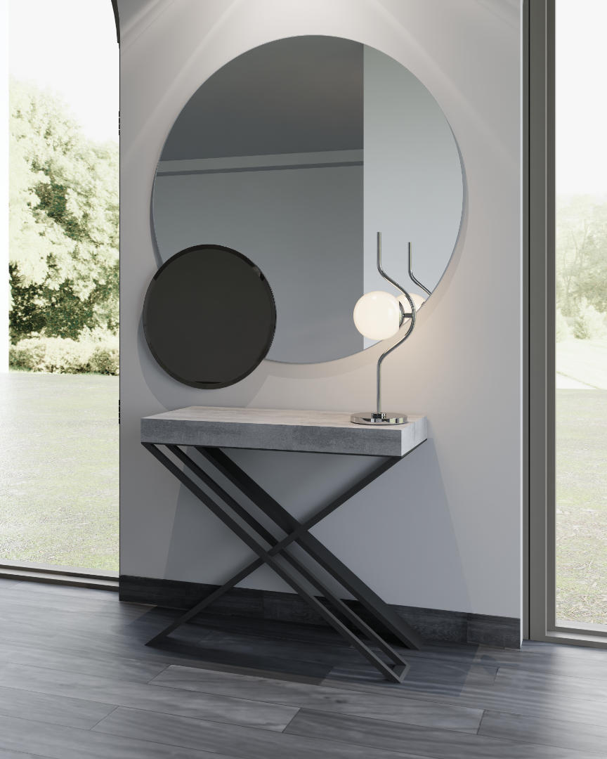 Specchio con inserto in vetro specchiato bronzo o fumé.