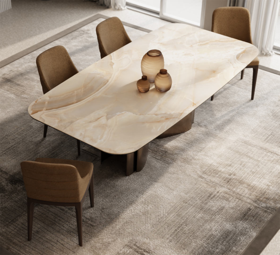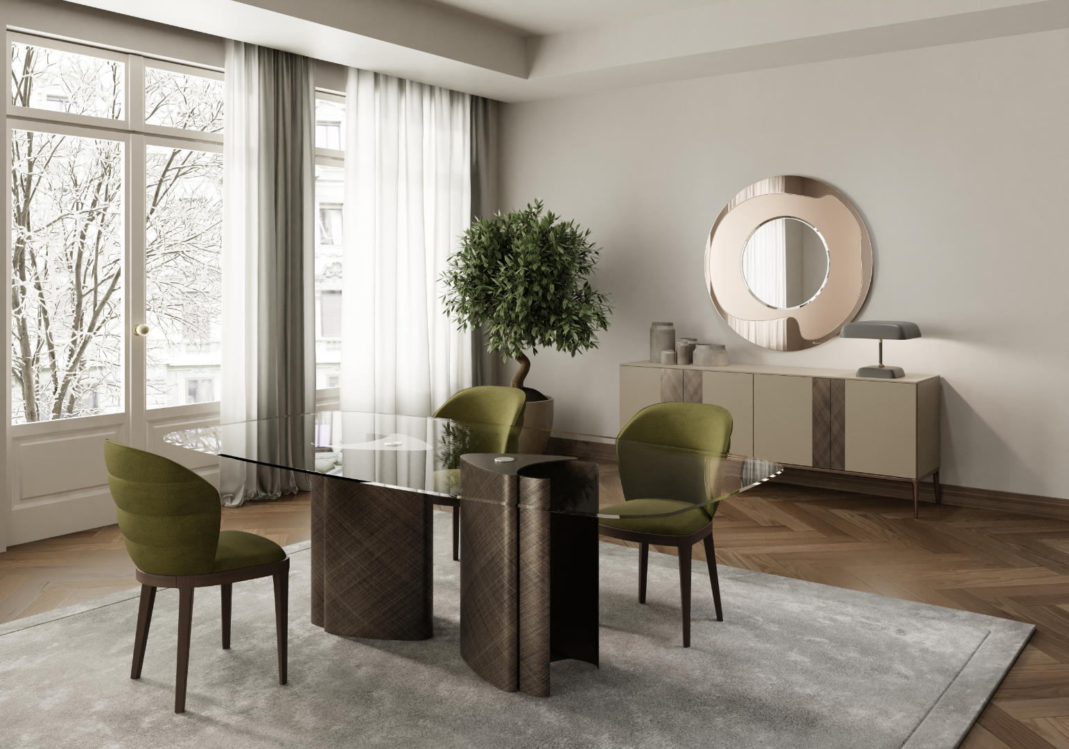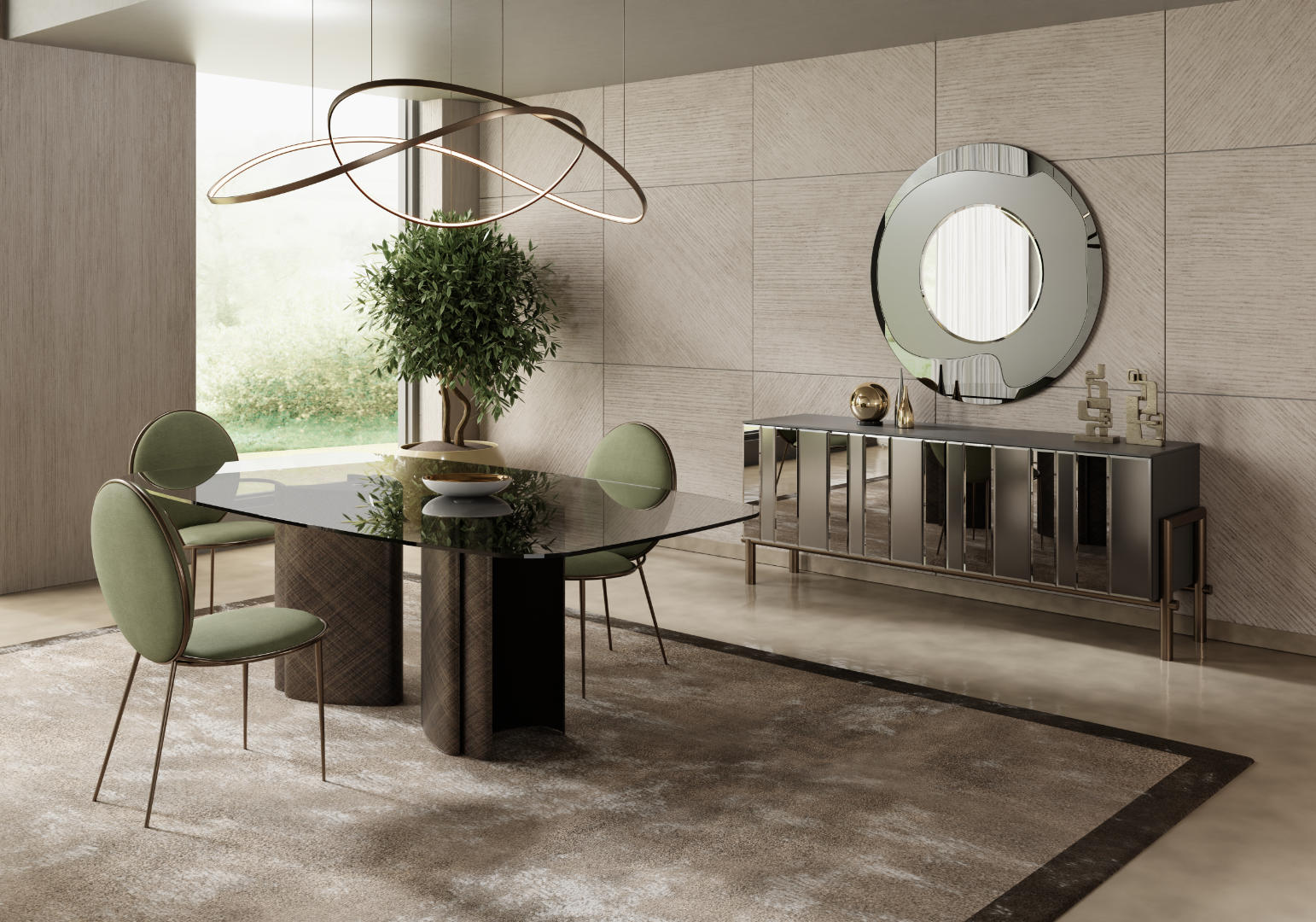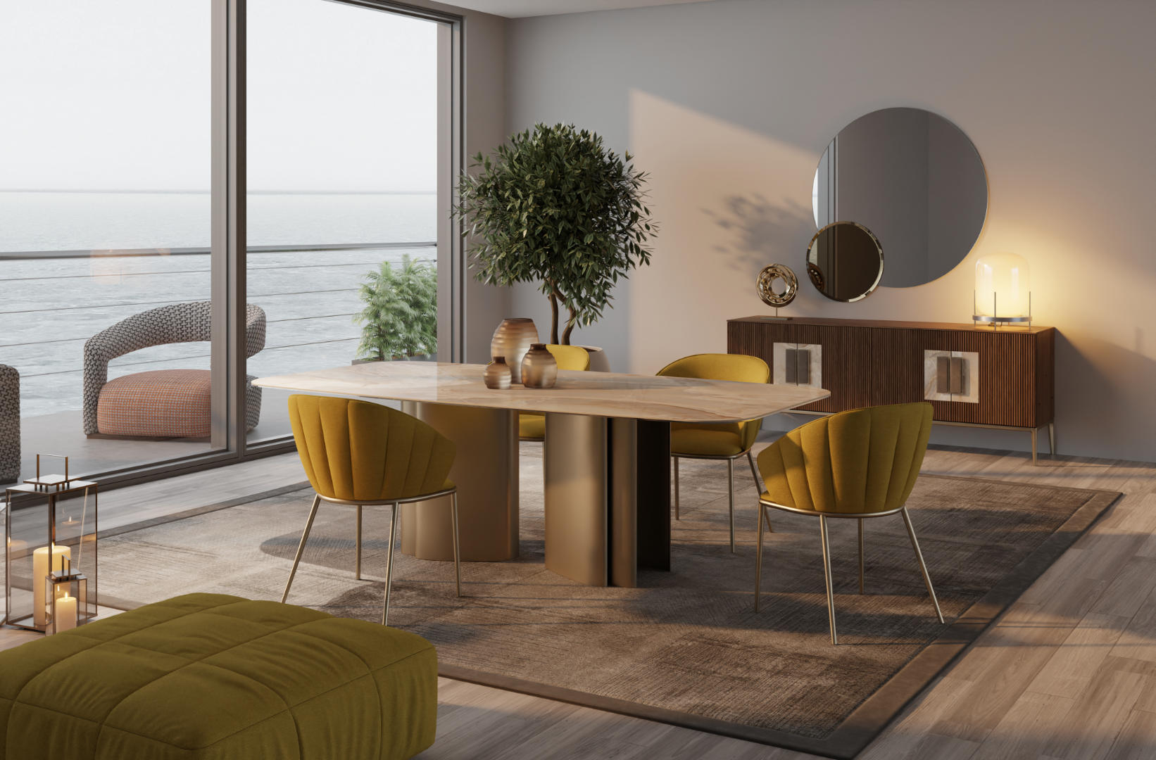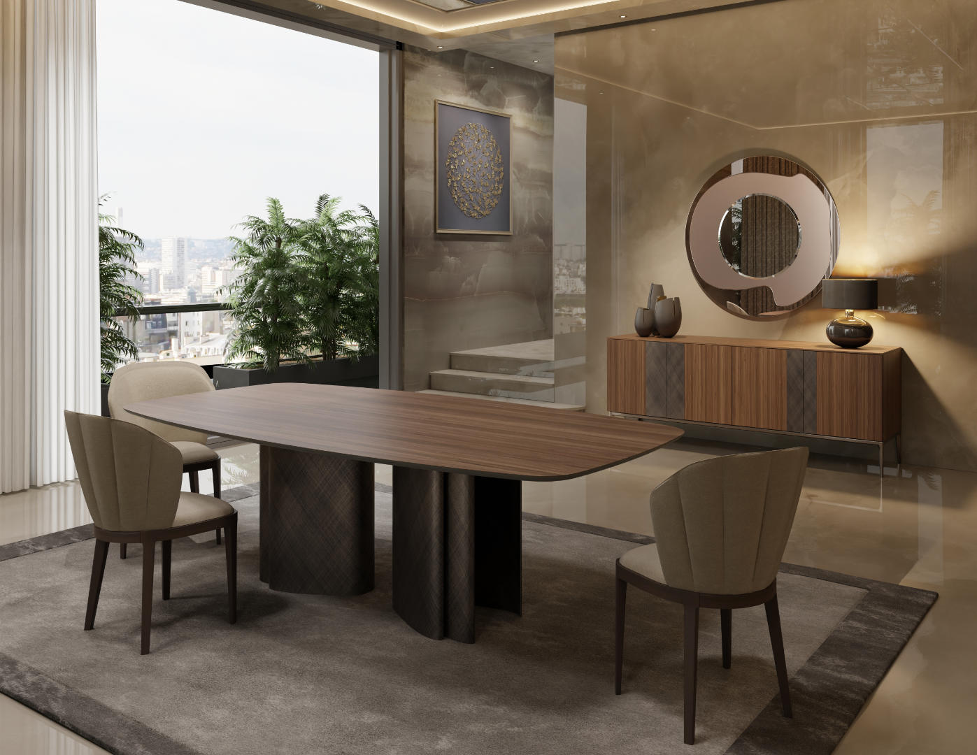 Diego è il tavolo che, con la sua imponente base e il piano elegante, dona forza e personalità alla tua casa.